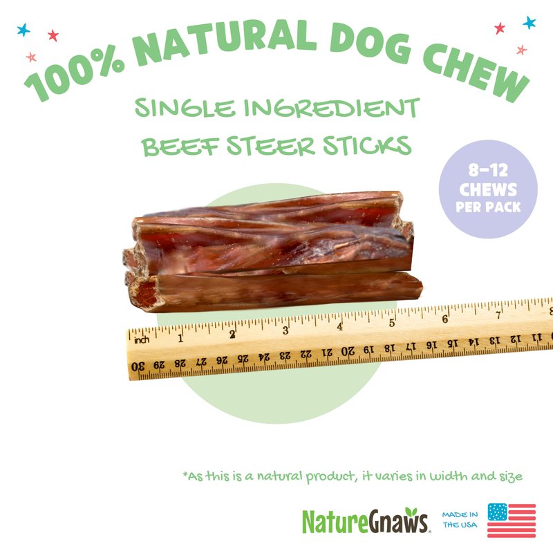 Nature Gnaws Steer Sticks - Bully Sticks for Dogs - Great for Small, Medium and Large Dogs - Made in USA, Single Ingredient - Natural Long Lasting Chew Sticks - Rawhide Free Bully Bones - 8oz