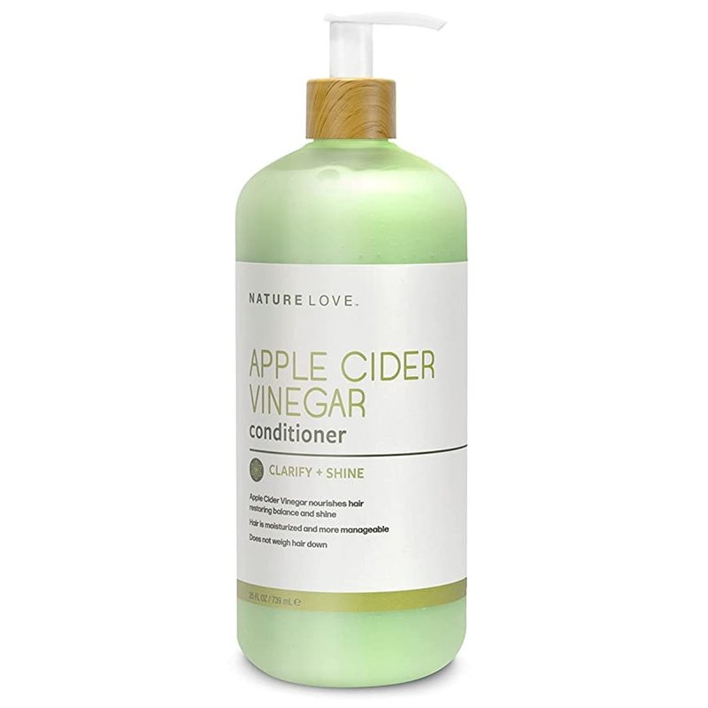 - NATURE LOVE APPLE CIDER VINEGAR CONDITIONER (25 OZ): Leaves hair with a healthy burst of shine and vibrancy. Uses the power of Apple Cider Vinegar to restore pH balance, leaving hair moisturized with easy and natural detangling, along with great shine.