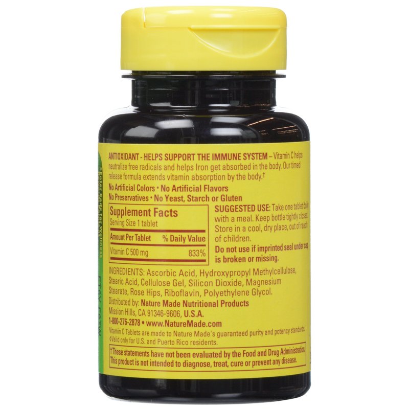 Nature Made Vitamin C 500 mg w. Timed Release Rose Hips Tablets 60 Ct