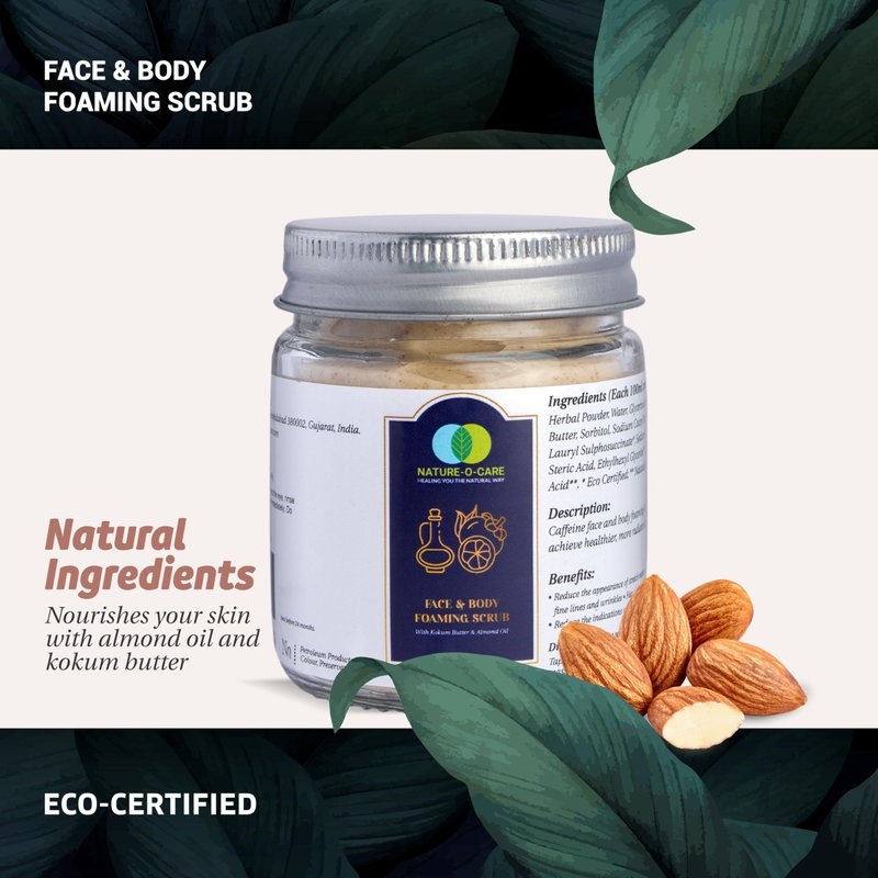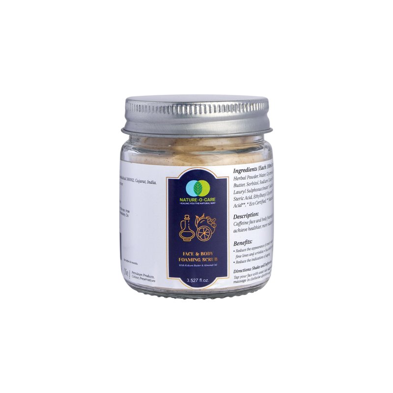 Nature-o-Care Face & Body Foaming Scrub with Kokum Butter & Almond Oil - Reduces Stretch Marks, Fine Lines, Wrinkles, and Sun Damage, Vegan & Cruelty-Free, 100g