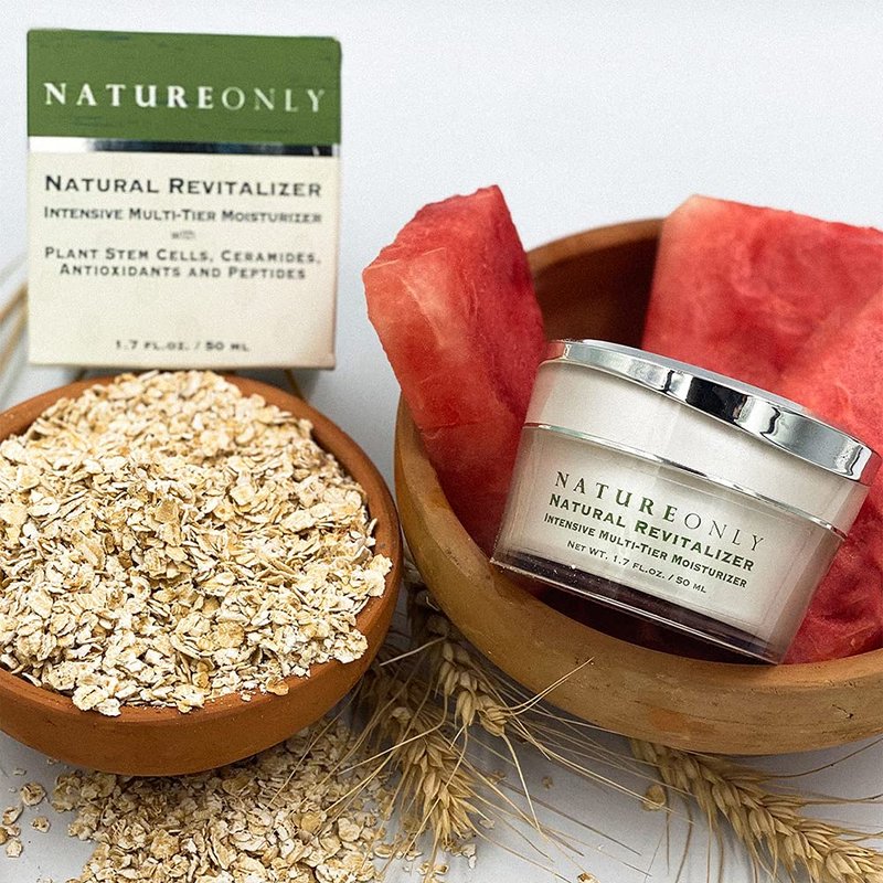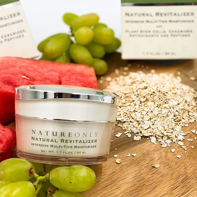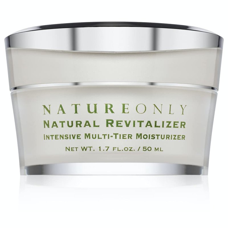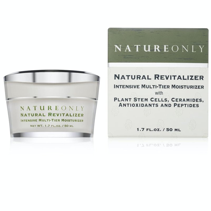 Nature Only's Natural Revitalizer is a rich and anti age face moisturizer, best oil free facial moisturizer cream intensified with a unique combination of youth sustaining agents, collagen boosting retinol cream paraben free peptides, antioxidants, vitamins, and essential fatty acids. Provides long lasting hydration and helps to rejuvenate the skin. Oil free moisturizer with sunscreen and natural Revitalizer nourishes and restores with bioactives to leave skin looking and feeling supple, smooth, and radiant. All natural facial cream created with a unique blend of ceramides to help support the natural skin barrier, lock in moisture and guard the epidermis. Natural face cream reduce redness provides skin-brightening effects while reducing the appearance of fine lines and wrinkles. Some of our main ingredients include: CERAMIDES Locks moisture in the skin, face cream for dark spots and prevent dryness and irritation while protecting against environmental damage. PEPTIDES Makes skin look younger cream, toned and tight, face moisturizer for acne prone diminishing the appearance of wrinkles and saggy skin. Best face moisturizer for sensitive skin ANTI-OXIDANTS Cleans up and removes free radicals, protects against environmental stressors, while helping the skin repair itself. Shea butter anti aging moisturizer, STEM CELLS Nourish skin cells, which promotes cell turnover and increases collagen production. Produces younger better-looking skin.