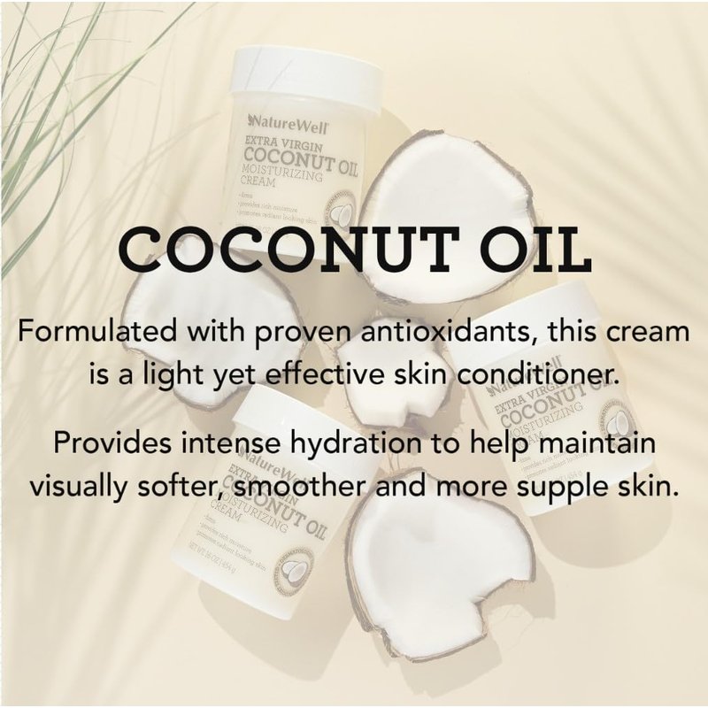 NATURE WELL Extra Virgin Coconut Oil Moisturizing Cream for Face, Body, & Hands, Restores Skin's Moisture Barrier, Provides Intense Hydration For Dry & Dull Skin,16 Oz (Packaging May Vary)