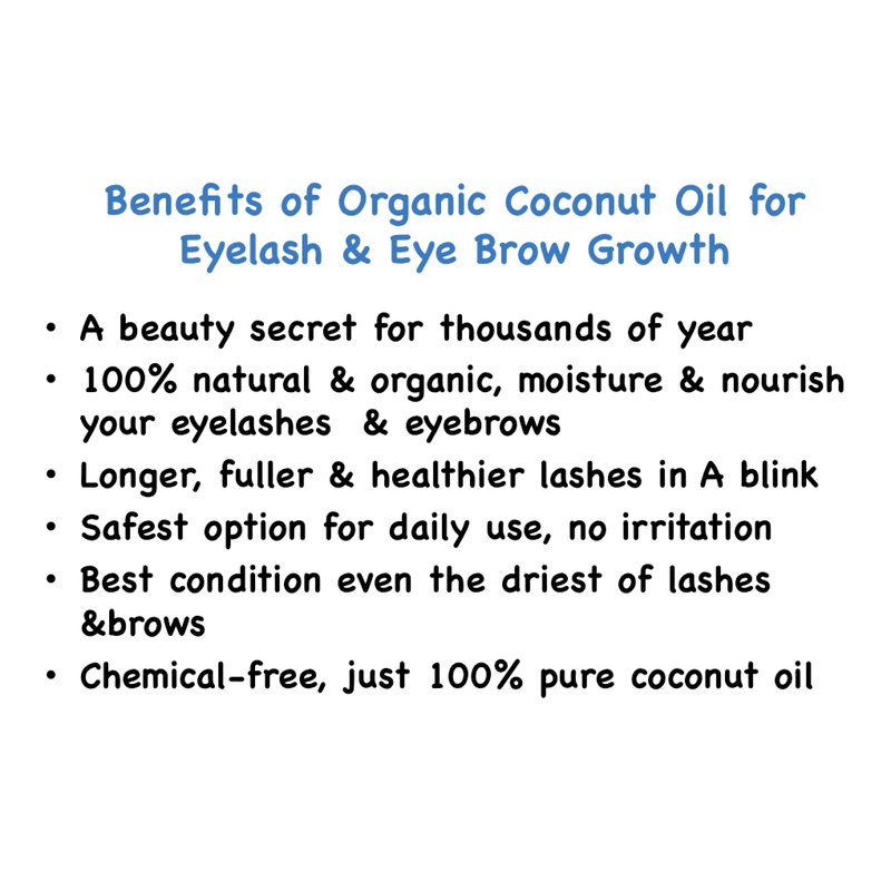 - 100% NATURAL & ORGANIC: Coconut oil has been a beauty secret for thousands of years. This is a godsend for maintaining moisture and nourishing your eyelashes and eyebrows, which later translate into stronger, healthier eyelashes and eyebrows.