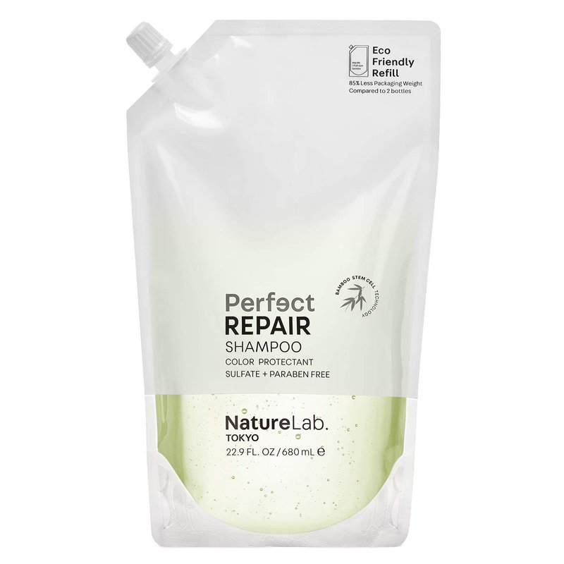 NatureLab. TOKYO Perfect Repair Shampoo: Eco-Friendly Refill Pouch: Reparative Shampoo to Replenish and Restore Damaged, Color Treated Hair and Strengthen New Hair I 22.9 FL OZ / 680ml