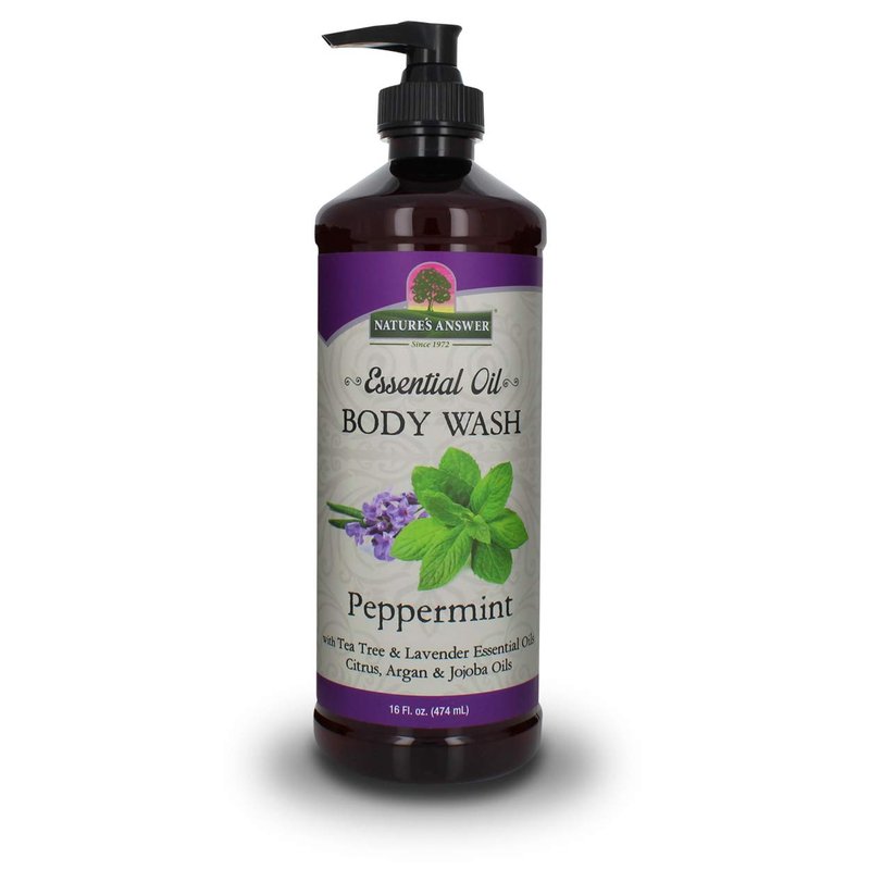 - Premium quality: Nature's Answer essential oil Body Wash peppermint was made with an extraordinary blend of natural essential oils and botanicals to pamper even the most sensitive skin * Advanced technology Botanical Fingerprint. Works by lifting dirt and dead skin away from your body and face. Peppermint Oil can calm and soothe
