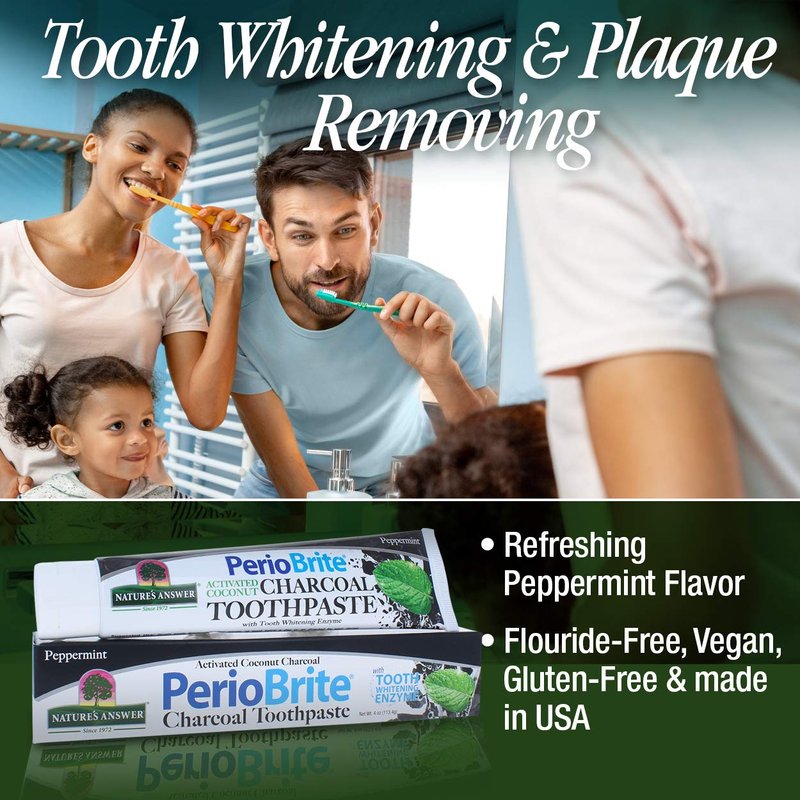 Nature's Answer Periobrite Activated Charcoal Toothpaste | Tooth Whitening, Plaque Removing, Peppermint Flavored Stain Remover | Flouride-Free, Gluten-Free, No Preservatives & Vegan 4oz