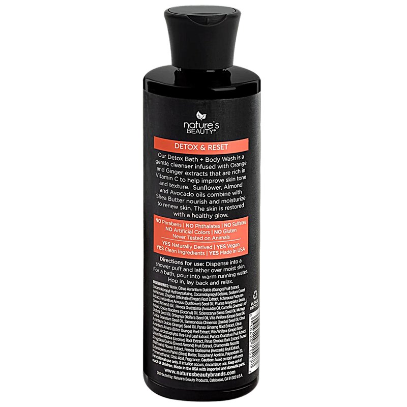 Our Nature's Beauty Detox Bath + Body Wash is a gentle cleanser infused with Orange and Ginger extracts that are rich in Vitamin C to help improve skin tone and texture. Sunflower, Almond and Avocado Oils combines with Shea Butter to nourish and moisture to renew skin. The skin is left feeling restored with a healthy glow.