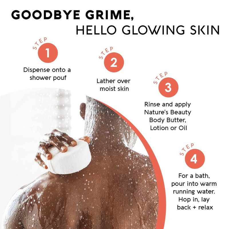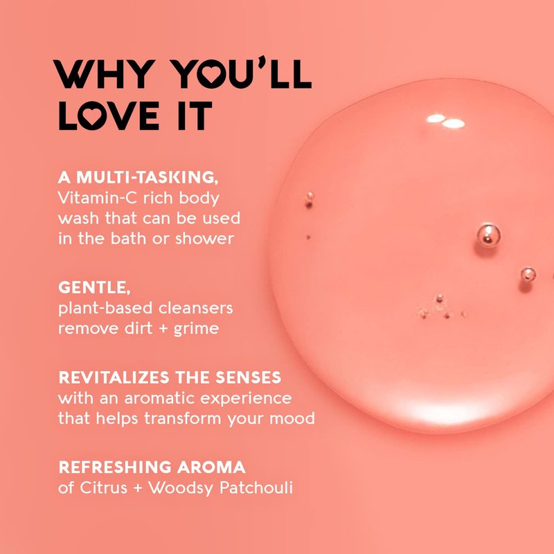 - CLEAN + RENEW: Our gentle bath + body wash is made with Vitamin-C rich Orange and Ginger Extracts to help improve skin tone + texture while softening your skin
