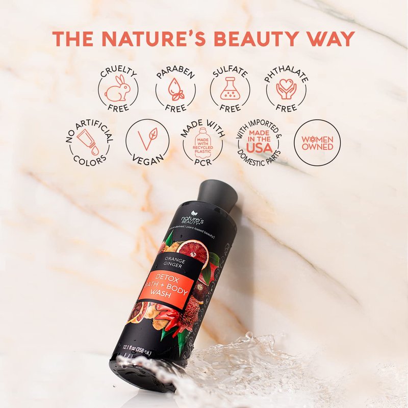 Nature's Beauty Orange Ginger Detox Body Wash Multi-Pack - Gentle Bath + Body Cleanser, Improve Skin Tone + Texture Made w/Vitamin C, Sunflower + Almond + Avocado Oils, 12 fl oz (2 Pack)