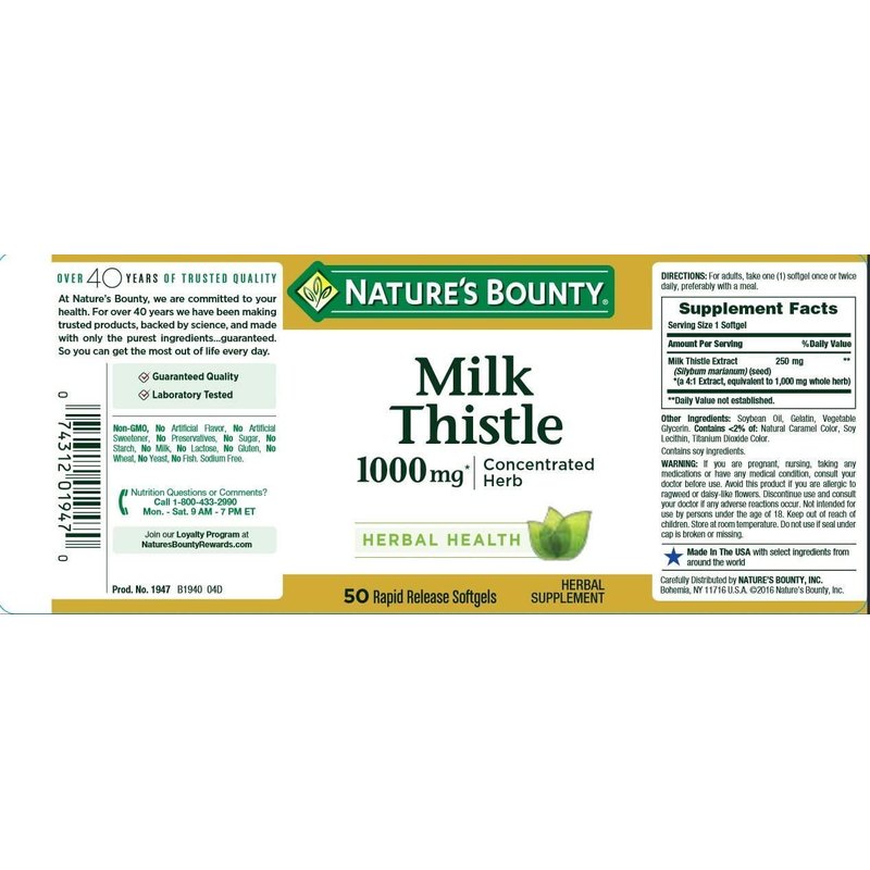- Nature's Bounty Milk Thistle 1000mg Herbal Supplement Softgels - 50 CT