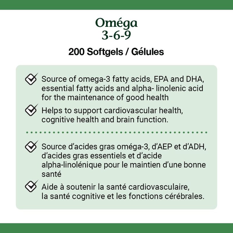 Ingredients Each Softgel Contains: Vitamin E 2.25 mg AT (5 IU) (dl-alpha tocopheryl acetate) Fish Oil 400 mg (from anchovy, mackerel and sardine) Borage Seed Oil (Borago officinalis) 400 mg Flaxseed Oil (Linum usitatissimum) 400 mg Omega 3 Fatty Acids: Alpha-Linolenic Acid Eicosapentaenoic Acid 106 mg Docosahexaenoic Acid 68 mg Omega 6 Fatty Acids: Linoleic Acid Gamma-Linolenic Acid Omega 9 Fatty Acid: Oleic Acid NON-MEDICINAL INGREDIENTS: Gelatin, Glycerin, Purified water. Legal Disclaimer Actual product packaging and materials may contain more and different information than what is shown on our website. We recommend that you do not rely solely on the information presented and that you always read labels, warnings, and directions before using or consuming a product.