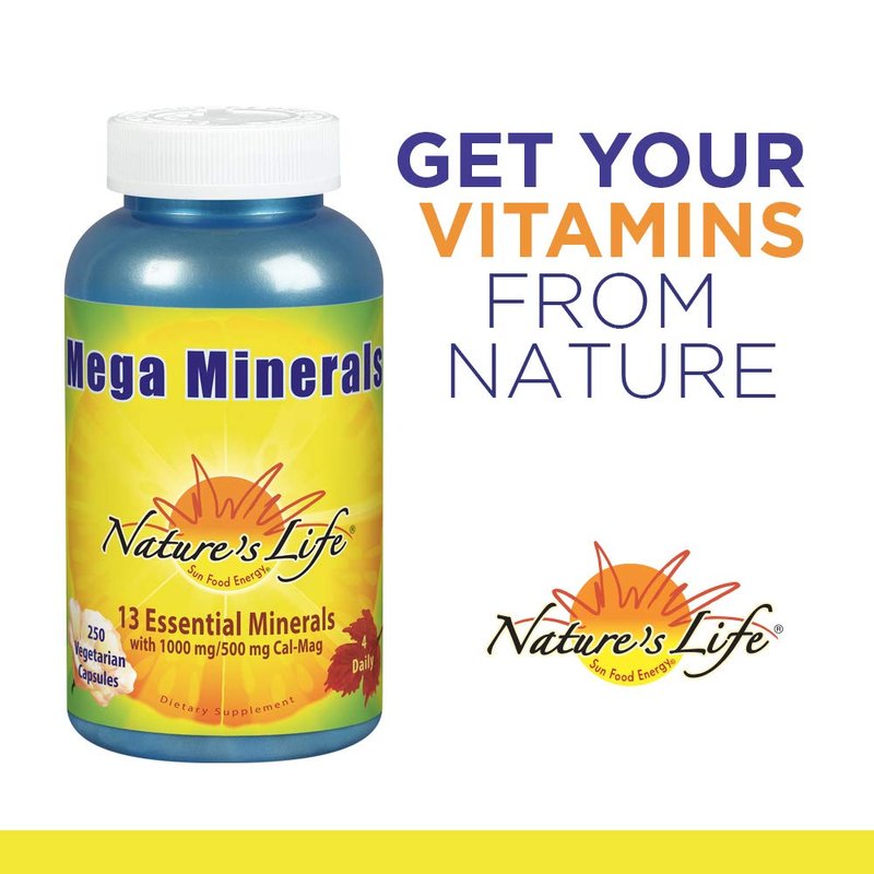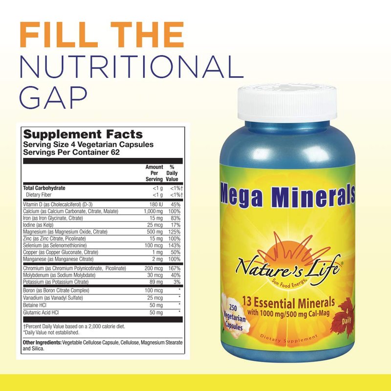 Nature's Life Mega Minerals Complex | Complete Multi Mineral + Vitamin D Supplement | 250 Vegetarian Capsules