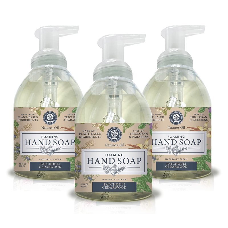 Nature's Oil Foaming Hand Soap, Patchouli Cedarwood, 10 Fluid Ounces (3 Pack)