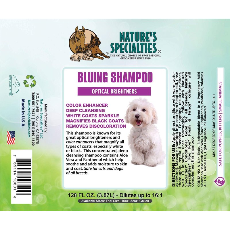 Nature's Specialties Bluing Ultra Concentrated Dog Shampoo for Pets, Makes up to 2 Gallons, Natural Choice for Professional Groomers, Optical Brightener, Made in USA, 16 oz