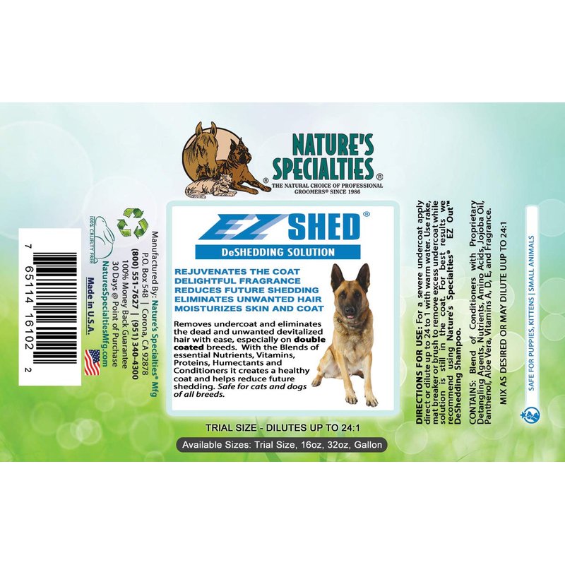 Nature's Specialties EZ Shed Ultra Concentrated Dog Conditioner for Pets, Makes up to 3 Gallons, Natural Choice for Professional Groomers, Deshedding Solution, Made in USA, 16 oz