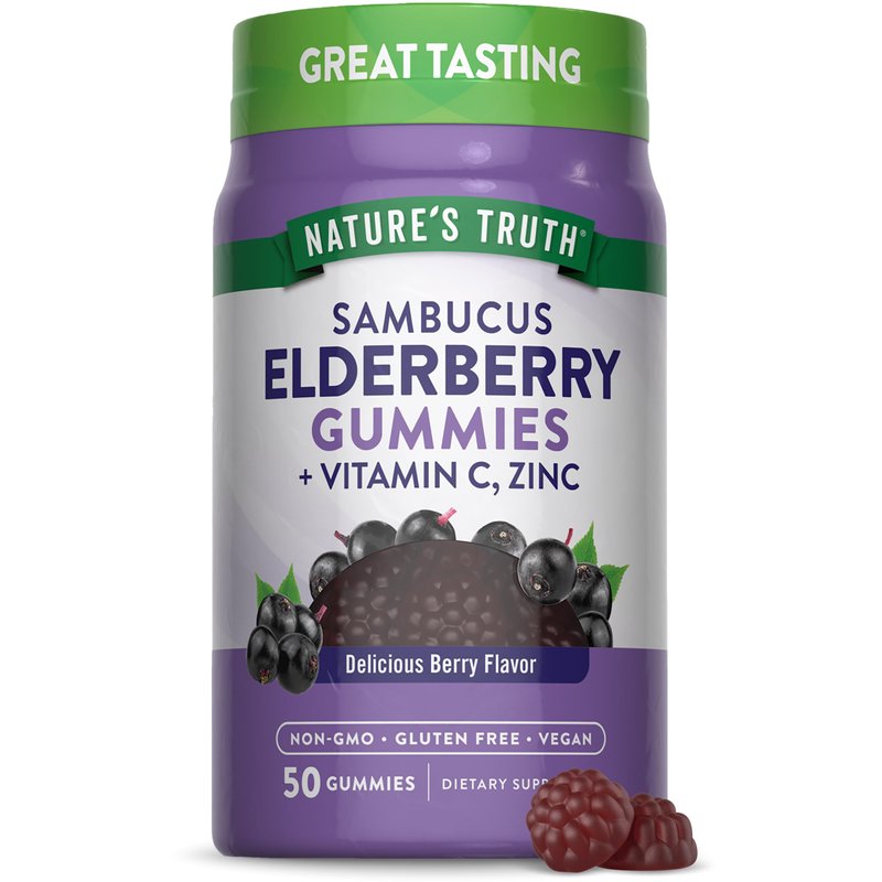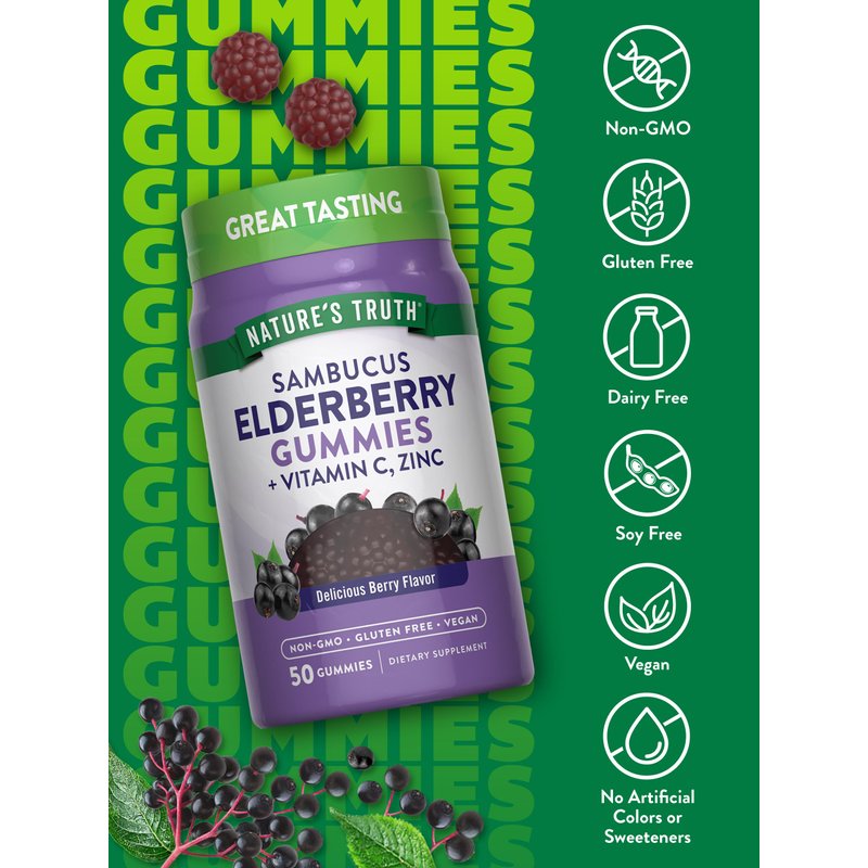 Nature's Truth Black Elderberry Gummies | 50 Vegan Gummies | with Vitamin C and Zinc | Berry Flavor | Vegan, Non-GMO, and Gluten Free Supplement