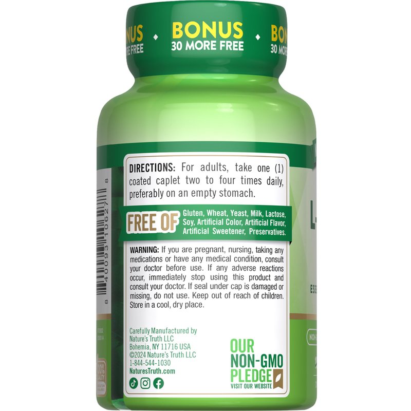 Nature's Truth L-Lysine 500mg | 130 Caplets | Free Form | Essential Amino Acid | Non-GMO & Gluten Free Supplement