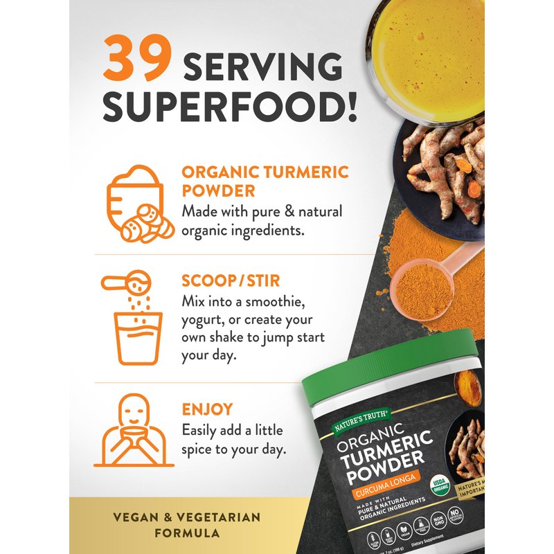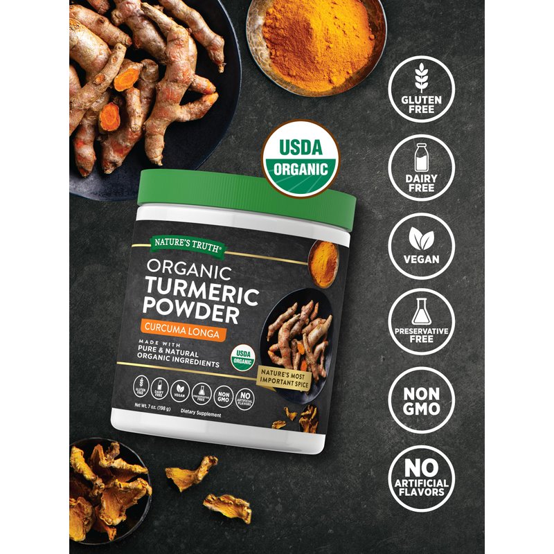 Nature's Truth Organic Turmeric Powder | 7 oz | Pure & Natural Turmeric Ingredients | Vegan, Non-GMO & Gluten Free Supplement