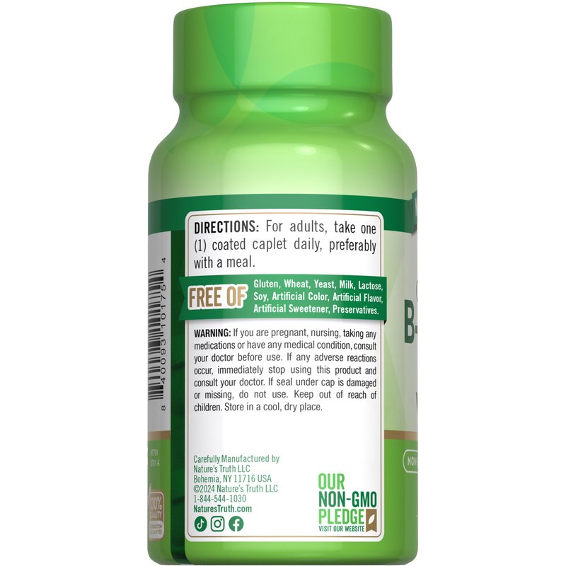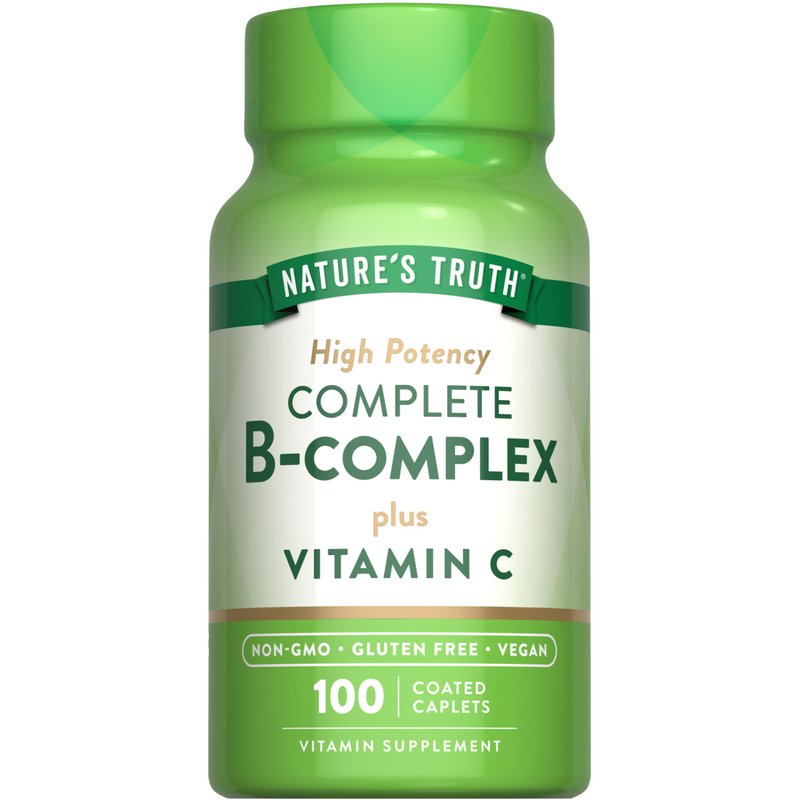 Nature's Truth Vitamin B Complex Plus Vitamin C | 100 Caplets | Vegan, Non-GMO & Gluten Free Supplement