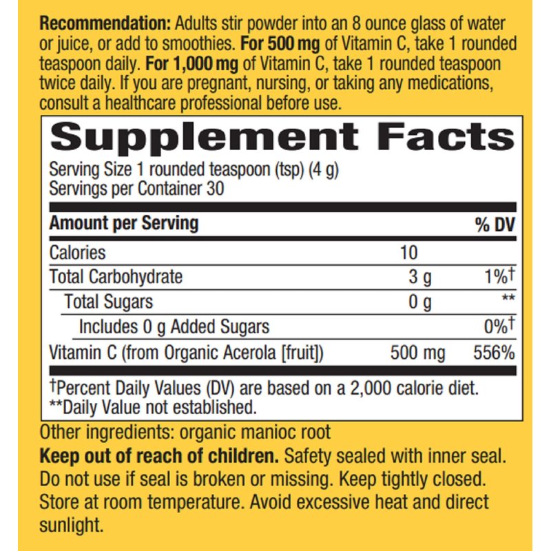 - 100% fruit source vitamin C from organic acerola, just as nature grows it.
