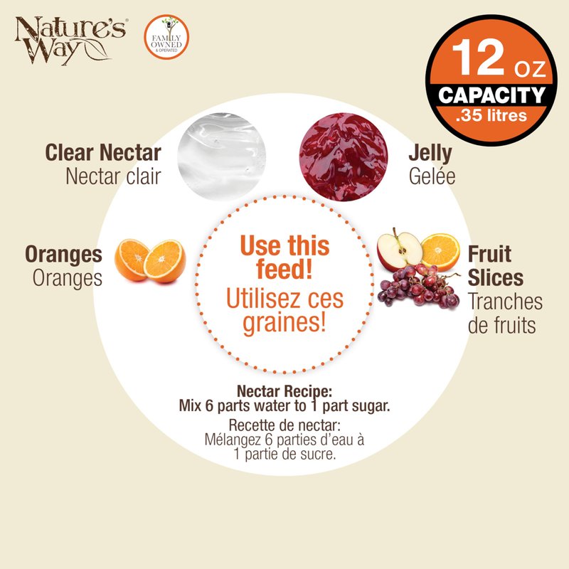 - MULTIPLE FEED OPTIONS: Simultaneously feed liquid nectar, jelly, and fruit to serve up an all-in-one buffet for your birds!