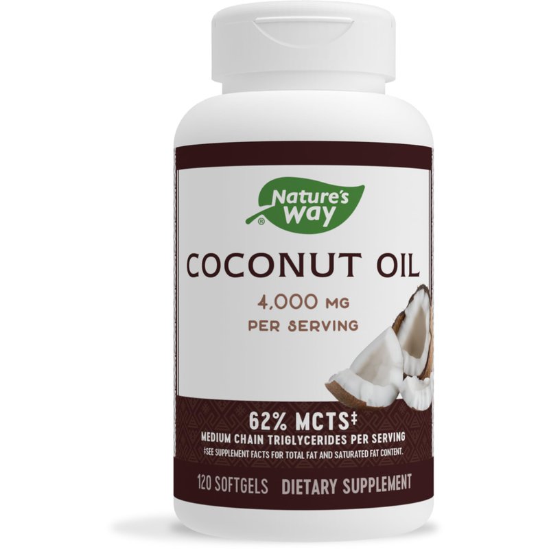 Nature's Way Pure Extra Virgin Coconut Oil, 62% MCTs, 120 Softgels