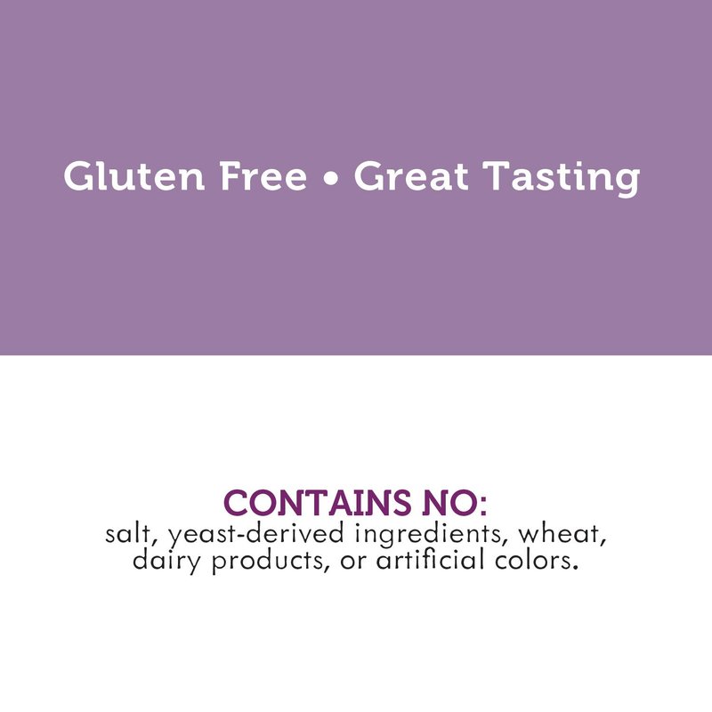 - Gluten-free. No yeast-derived ingredients, wheat, dairy, or artificial colors.