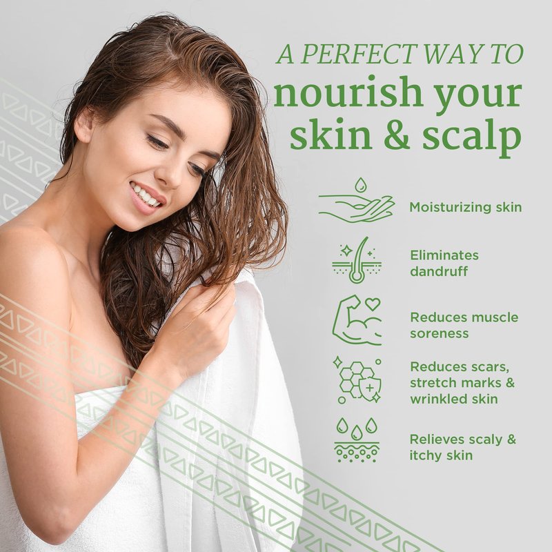 - Helps Boost Your Skin’s Overall Condition - Apply our shea butter moisturizer for hair to fight dandruff and scalp irritation. You can also use it as a shea butter face cream to alleviate dull, dry skin and help improve the appearance of fine lines and wrinkles.