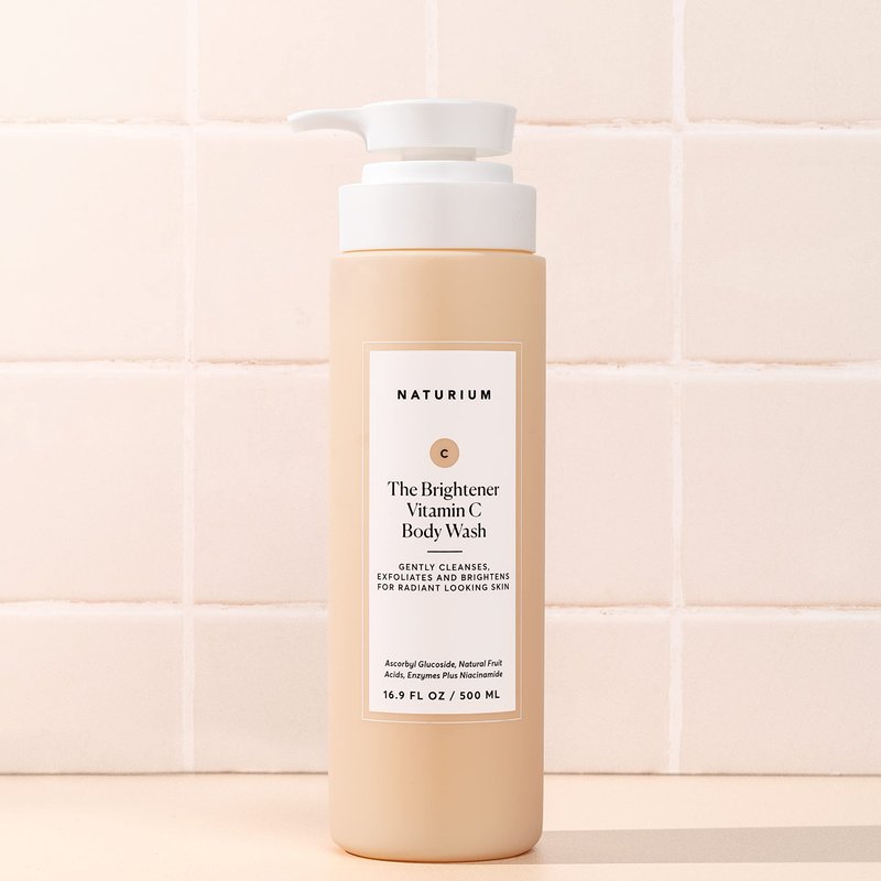 Naturium's silky, gel-cream brightening vitamin C body wash is formulated with gentle, yet effective surfactants, combined with ascorbyl glucoside, a highly stable vitamin C derivative, bioactive fruit acids and enzymes to brighten the look of dark spots and dullness for softer, smoother and more radiant looking skin.