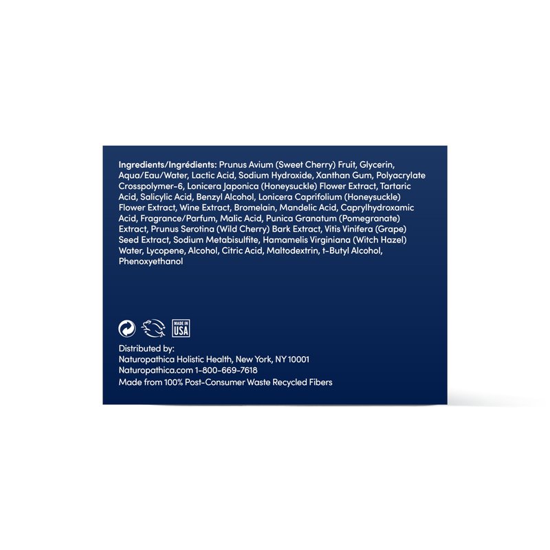 FEATURED INGREDIENTS. Sweet Cherry Puree: Rich in nutrients and vitamins that help to nourish and brighten the skin. Lactic Acid: At 5% concentration, this lactic acid solution helps lighten darkened areas for a brighter, more even skin tone. Bromelain: Derived from pineapple, this enzyme is known to digest dead surface proteins for gentle, non-invasive smoothing. FOR DEEPER BEAUTY. Naturopathica was founded on the belief that herbalism, naturopathic healing, and holistic wellness should be coupled with cutting edge science. Addressing concerns with herbal remedies, tinctures, aromatherapies, and the highest goal is improving skin’s function and appearance at a deeper, more efficacious level. OUR PLANET + ITS INHABITANTS. All ingredients are sustainably and responsibly sourced. Employees and those of the vendors are paid fair, life-enhancing wages. Everything that is packed, shipped and printed is made from glass or recycled material whenever possible. We never test on animals, and are proud to be Leaping Bunny Cruelty-Free Certified. OUR FOUNDER. Inspired by childhood visits to apothecaries with her aunt in France, Barbara embarked on an exploration of natural healing at an early age. Barbara now holds a Master’s degree in Therapeutic Herbalism and credentials in esthetics, advanced massage and aromatherapy. Proudly manufacturing all products in the United States, Naturopathica supports groups who share the same values, including the American Botanical Council, the Green Spa Network and local non-profit organizations