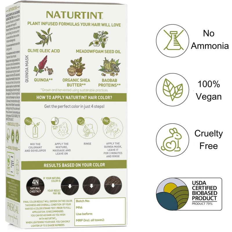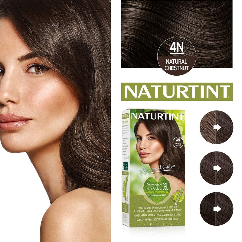 Naturtint Permanent Hair Color, 4N Natural Chestnut, Plant Enriched, Ammonia Free, Long Lasting Gray Coverage and Radiante Color, Nourishment and Protection