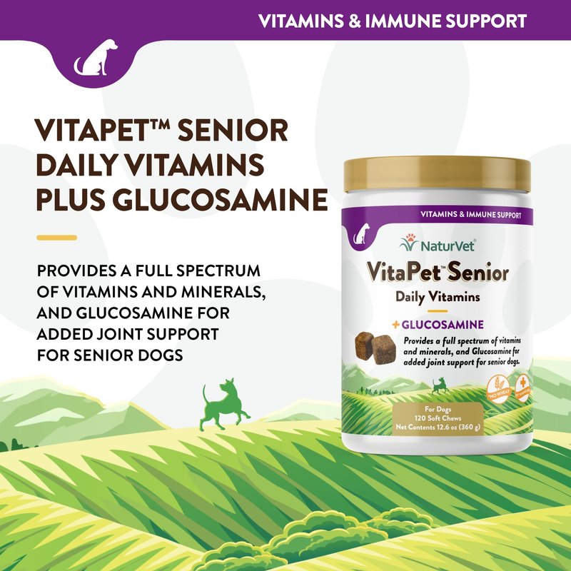 - VITAMIN SUPPORT FOR SENIOR DOGS: Your senior dog needs nutrients daily to remain active. Naturet VitaPet Senior Daily Vitamin Dog Supplements help to boost your dog’s overall health with a blend of full-spectrum vitamins and minerals.