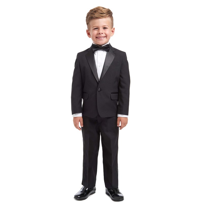 - Style: 4-piece Tuxedo With Dress Shirt, Bow Tie, Jacket, and Pants