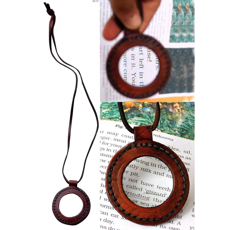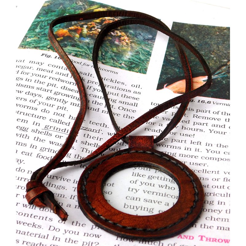 - Nautical Vintage Leather Strap Necklace Magnifying Glass Magnifier