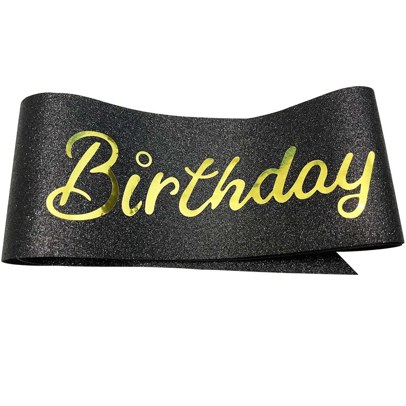 NAUXIUDSJS Birthday Sash for Women, Birthday Princess Glitter Black Sash with Foil Letter, Party Favors Supplies for 18th 21st 30th 40th 50th 60th 70th 80th or Any Bday Party,Black