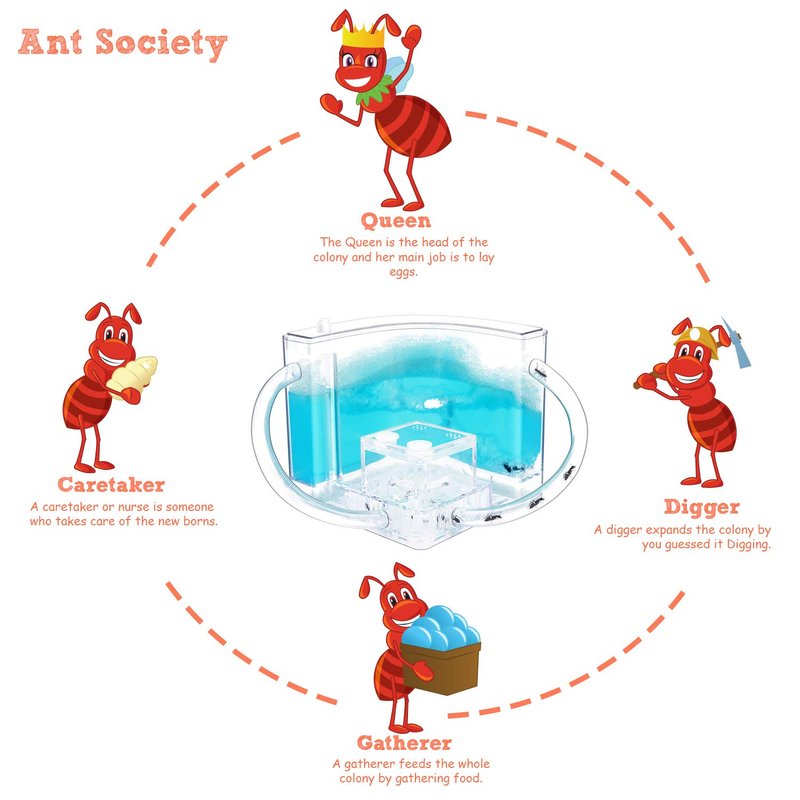 - 🐜PLANT BASED BLUE GEL FOR ANTS SAFETY AND COMFORT - We care for these little guys; our blue gel is made from natural seaweed extract and corn extract which makes it soft ,moist and yummy! It’s tested safe for ants to eat and live in. The blue gel is already pre-filled into the castle. Our ant habitat is designed with functional tubes, a feeding area, a nursery, a rest area, a living area with ventilation, and a water system. Witness the full life cycle of these fascinating ants.