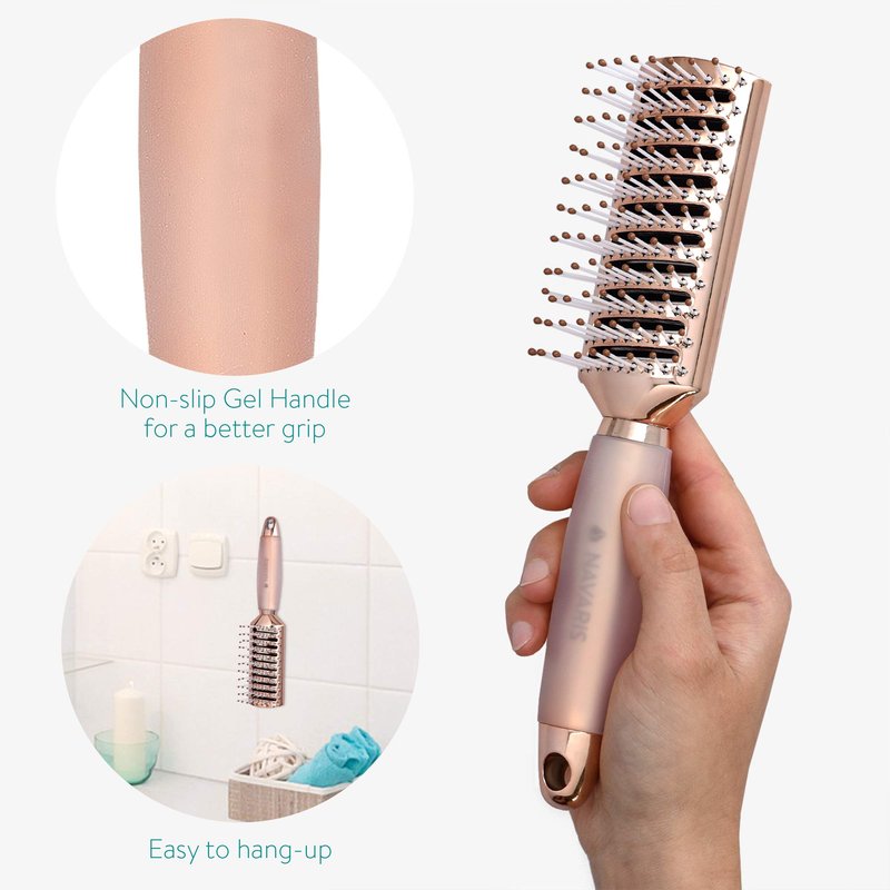 - Whether you have long locks of thick, curly hair, or thinner, straight hair, this vented brush for Navaris is great for helping you maintain your hair; in the