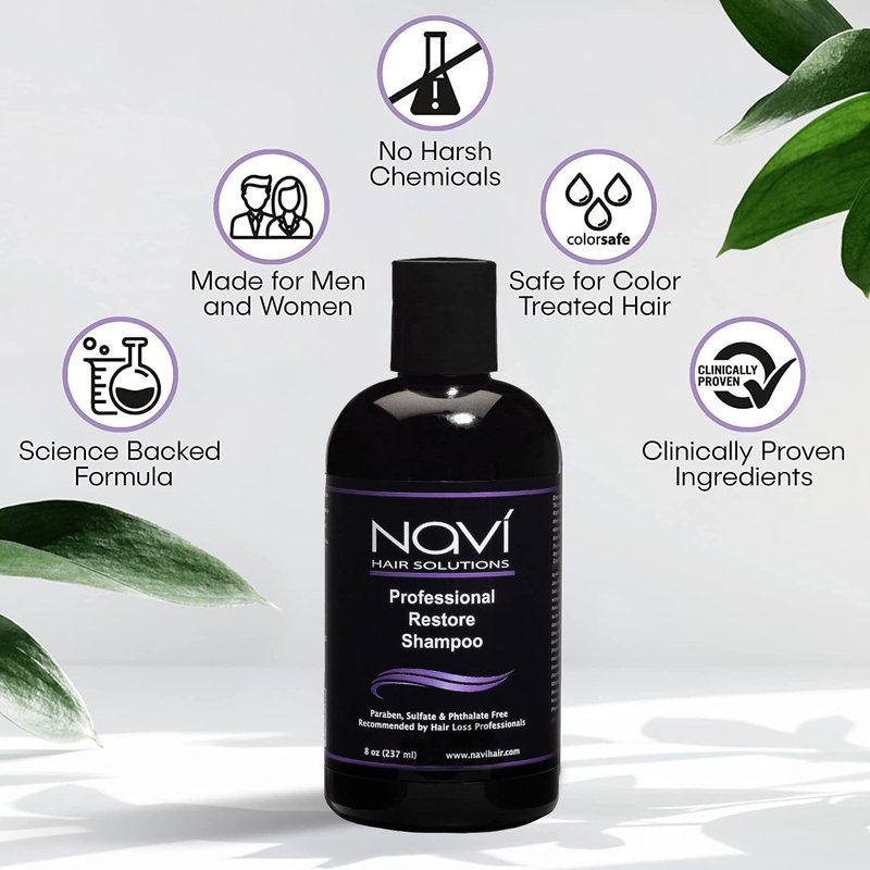 The Navi Professional Restore Shampoo is our strongest, most effective DHT blocking formula for thicker, stronger, healthier looking hair. Containing scalp and hair healthy ingredients, DHT blocking components and cutting edge, science backed elements, our shampoo will have your hair healthier, fuller and thicker in just months!