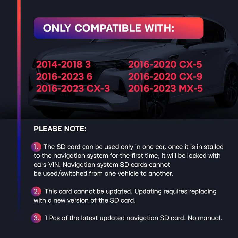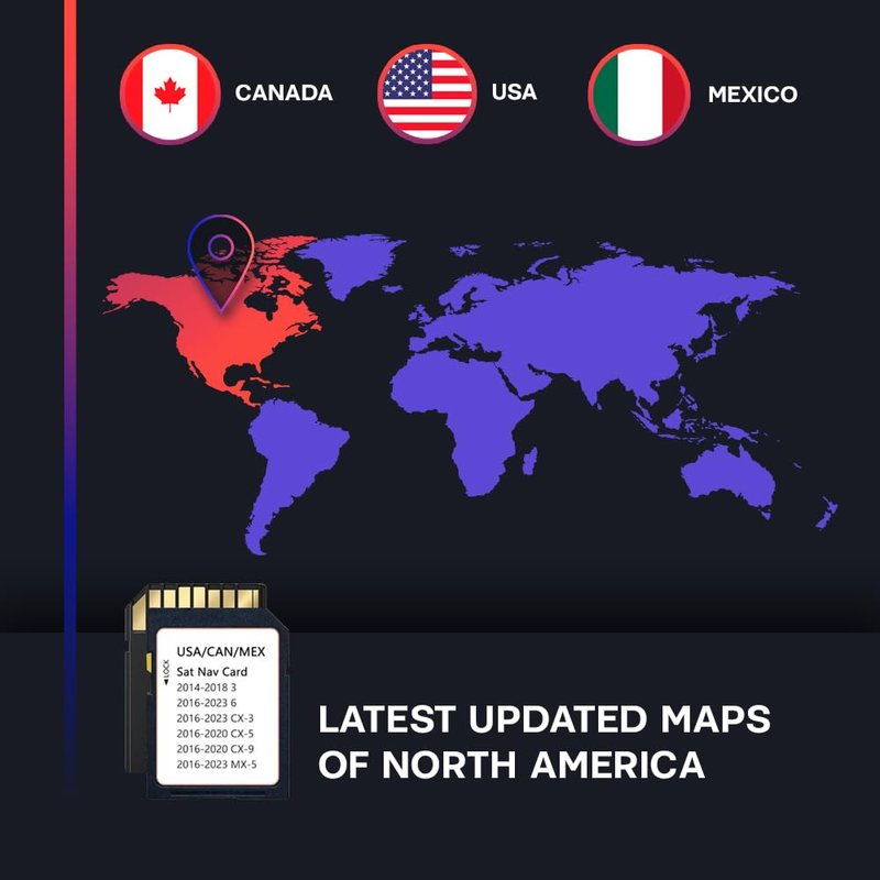 Navigation SD Card Map Compatible with Model 3-(2014-2018),(2016-2023)-6,(2016-2020)-Cx 5,(2016-2020)-Cx 9,(2016-2020)-Cx 3, (2016-2023)-MX5 USA/CAN/MEX