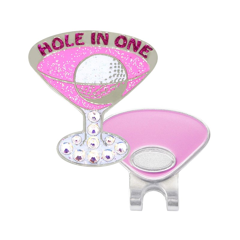 Mark Your Spot with BLING CRYSTAL Pink Cosmo "Hole In One" Ball Marker! This fun new ball marker combines two of our most popular themes - Happy Hour and Hole In One! Celebrate that money shot with this fun ball marker! Beautifully crafted Ball Markers featuring genuine hand placed Crystals and Glitz adds some BLING to your game! Show off your sparkling uniquely designed Golf Crystal Ball Marker on the green. All items include a Magnetic Ball Marker Clip that attaches virtually anywhere.