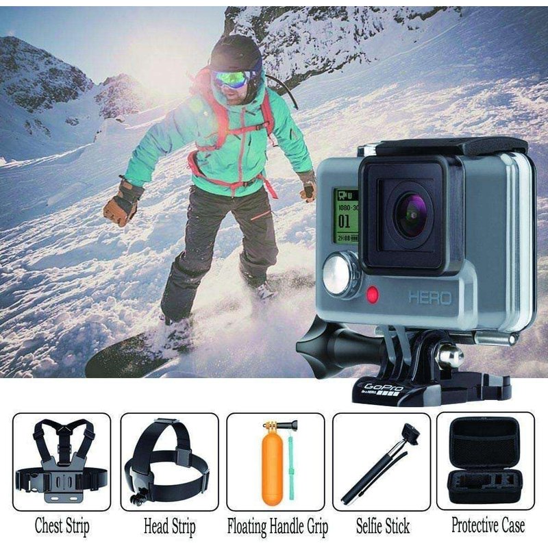 - Head Band, Wrist Strap, Chest Strap, Rotatebale Clip, Bike Mount, Wrench, Suction Cup Mount, Camera Case, Drawstring Carry Bag, Buoyancy Stick, Hand Monopod, Selfie Stick, 2 x Selection Camera Mounts and 2 x Tripod Adapters