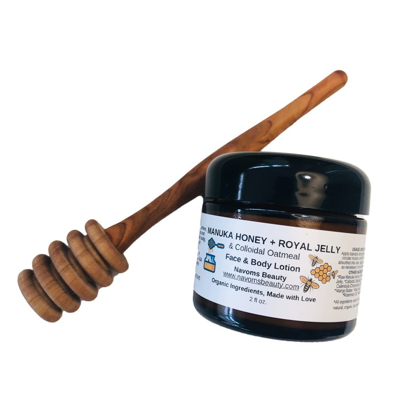 Navoms Beauty Organic Manuka Honey and Royal Jelly Lotion with Colloidal Oatmeal | Bee Moisturizing Lotion | Face and Body Lotion | For All Ages and Skin Types | (2 oz glass jar)