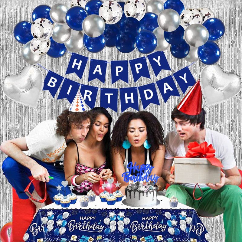 - [Wide Apply]: Our navy blue and silver birthday decorations kit for men will make your party feel truly special. Blue birthday decorations for men suitable for girls, boys ,men and women, adults are ideal as birthday, fiesta, carnival, graduation party decoration, anniversary party, festive scene layout and New Years decorations, perfect for men and women 18th 21st 22nd 25th 30th 40th 50th 60th 70th birthday party.