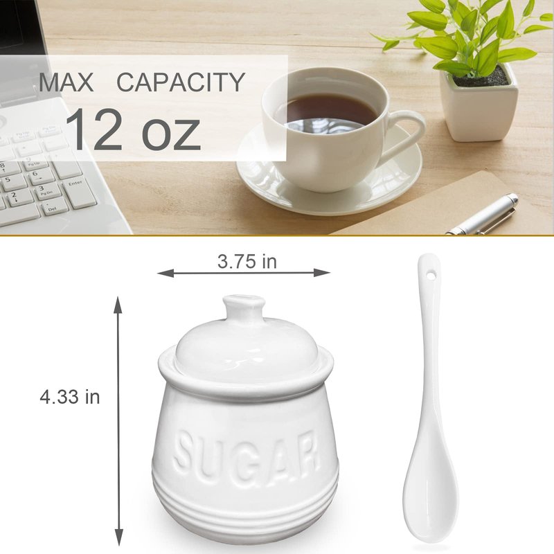 - 【Ideal Size】 This beautiful ceramic sugar bowl is a cute size that doesn't take up much space and has a capacity of 12 ounces.The ideal capacity can meet daily sugar needs.