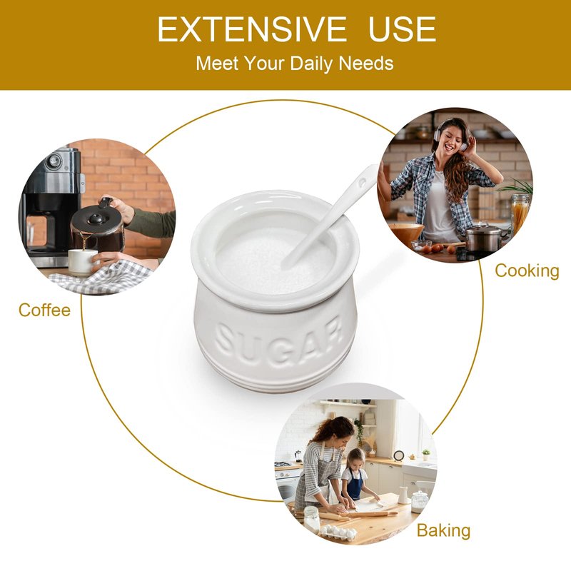 - 【Suitable for Different Scenes, Decor】 This modern white porcelain sugar pots, you can put it in various places in your home, cabinet, dining table, kitchen, office, dining room, without taking up much space, it is very convenient to use as a kitchen canister.