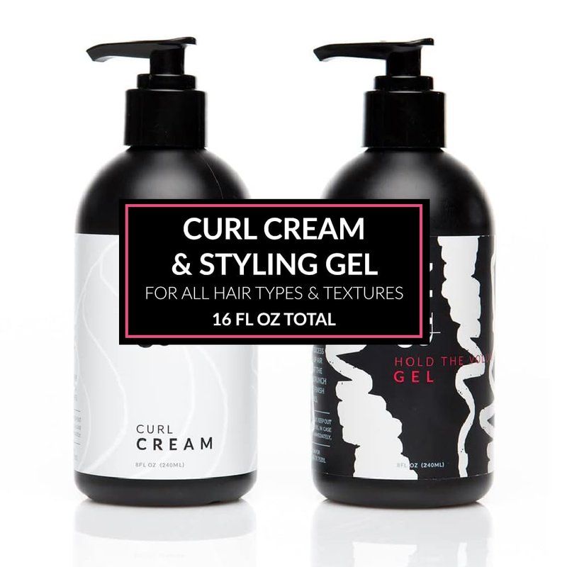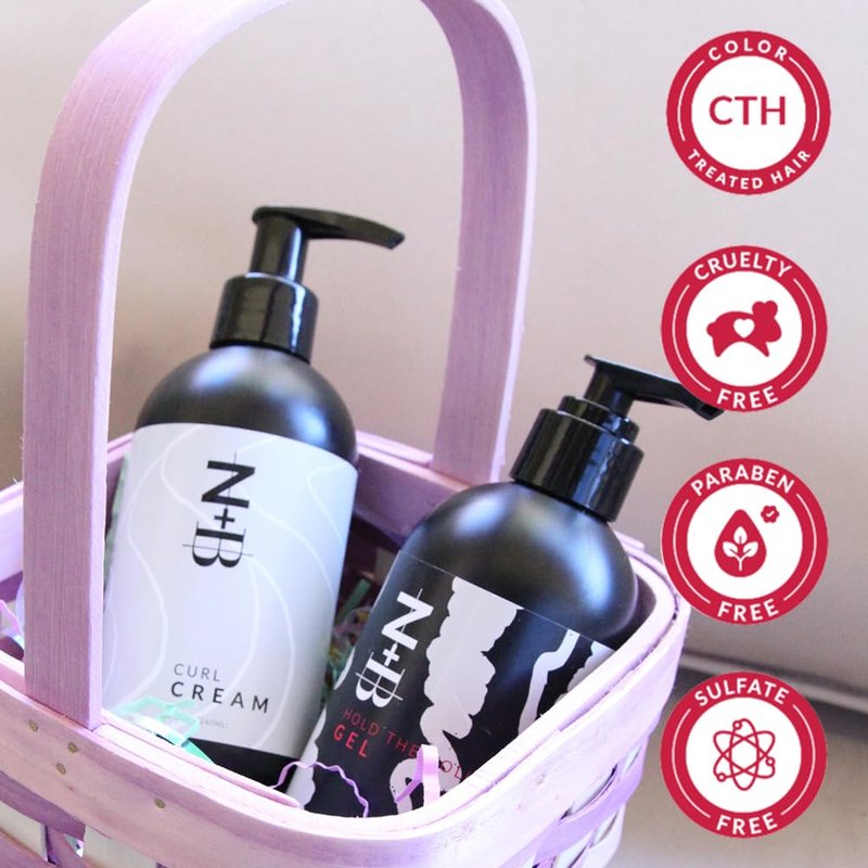 N+B Hold the Volume Set - Curl Cream + Styling Gel | Made w/Blue Agave Oil | Paraben-Free, Sulfate-Free | For All Hair Types & Textures