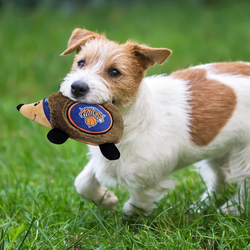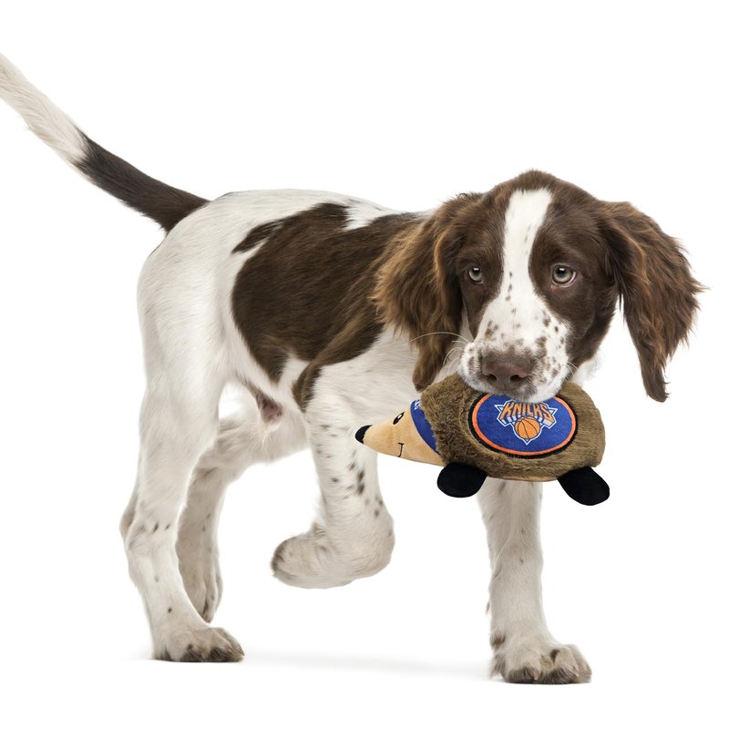 NBA New York Knicks Plush Hedgehog Toy for Dogs & Cats, Cool Soft Pet Toy for Fun and Interactive Play, Dog Chew Toy with Squeaker, Licensed Hot Pet Toy