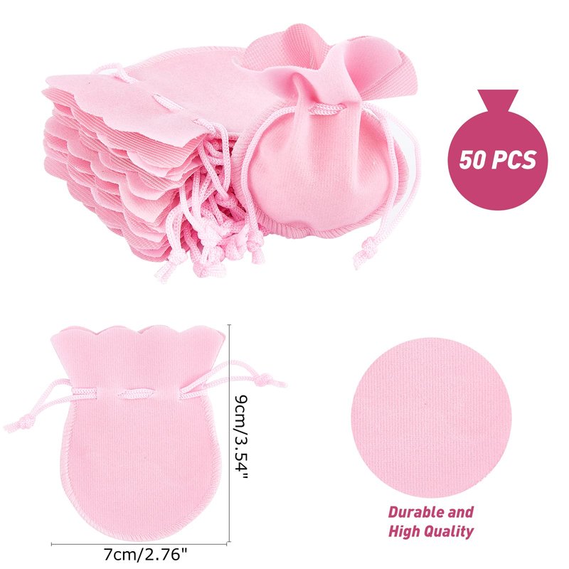 NBEADS 50 Pcs Velvet Bags, 3.54×2.75" Calabash Shape Drawstring Jewelry Pouches Small Candy Gift Bags for Christmas Wedding Birthday Party Favors, Hot Pink