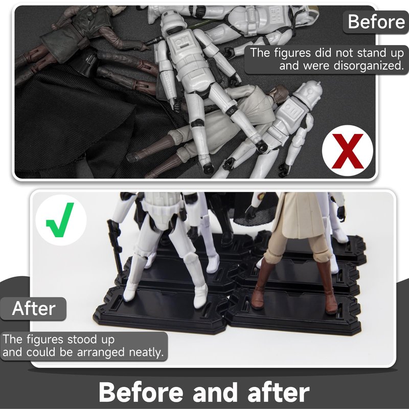 - დ Stand Base: Includes 30Pcs Exclusive Black Display Stand Base. For fans Who Like To Set Up Stand Present Their Action Figures.