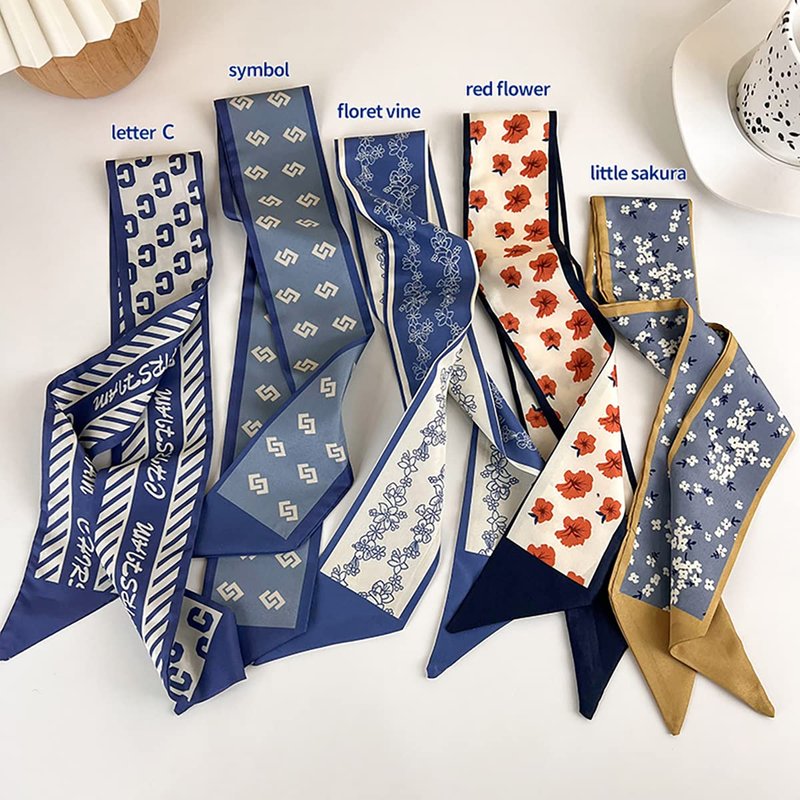NCDUANSAN Retro small silk scarf girl heart spring and summer narrow ribbon headband headband bag decoration long scarf headdress (blue hair band 5pcs)